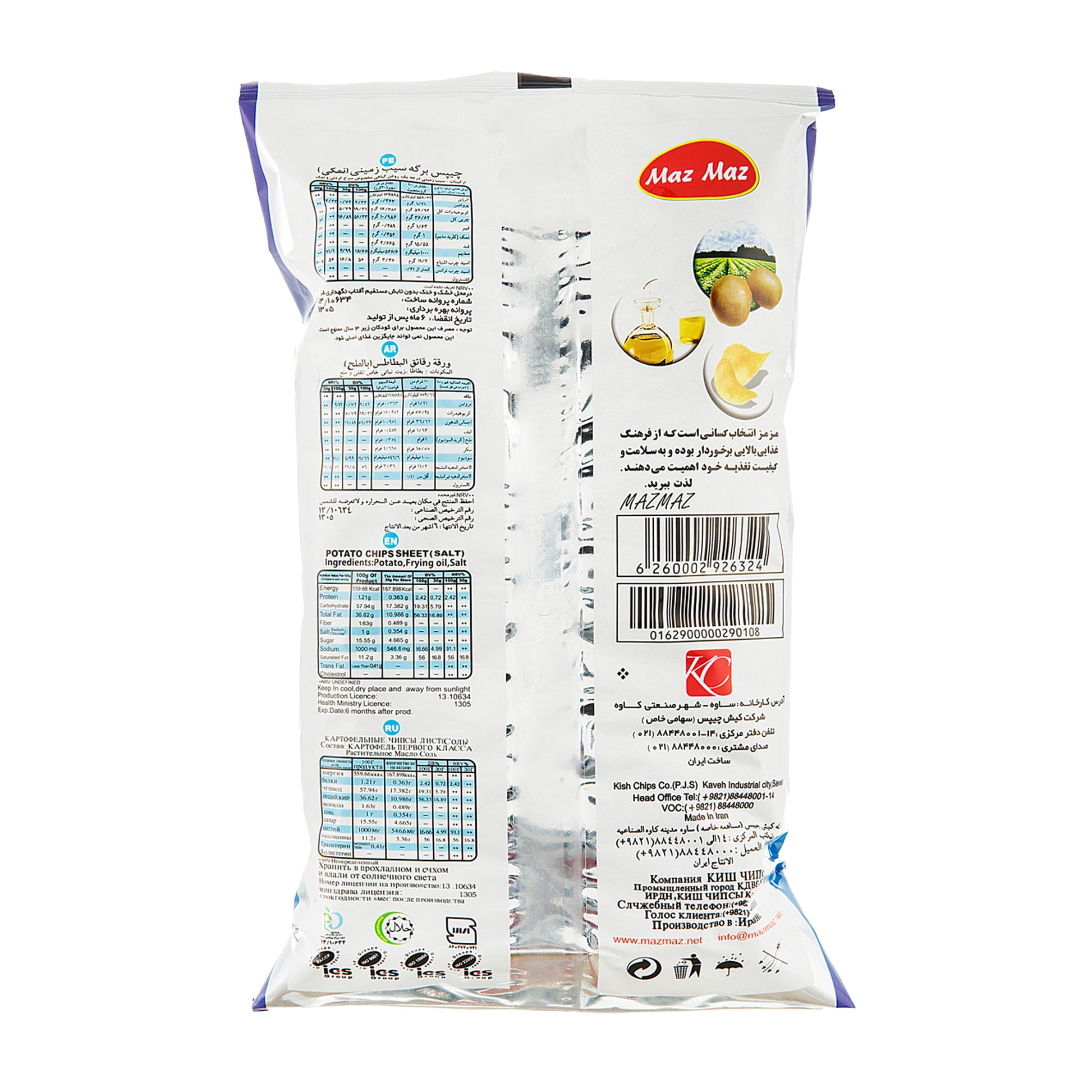 Enjoy the pure, simple taste of Maz Maz Salty Chips (120 gr). These are classic, thin-cut potato chips, cooked to a perfect crisp and lightly seasoned with salt to enhance the natural potato flavor. A timeless, no-fuss snack for any occasion, great on their own or with your favorite dip. This bag is a great size for sharing.