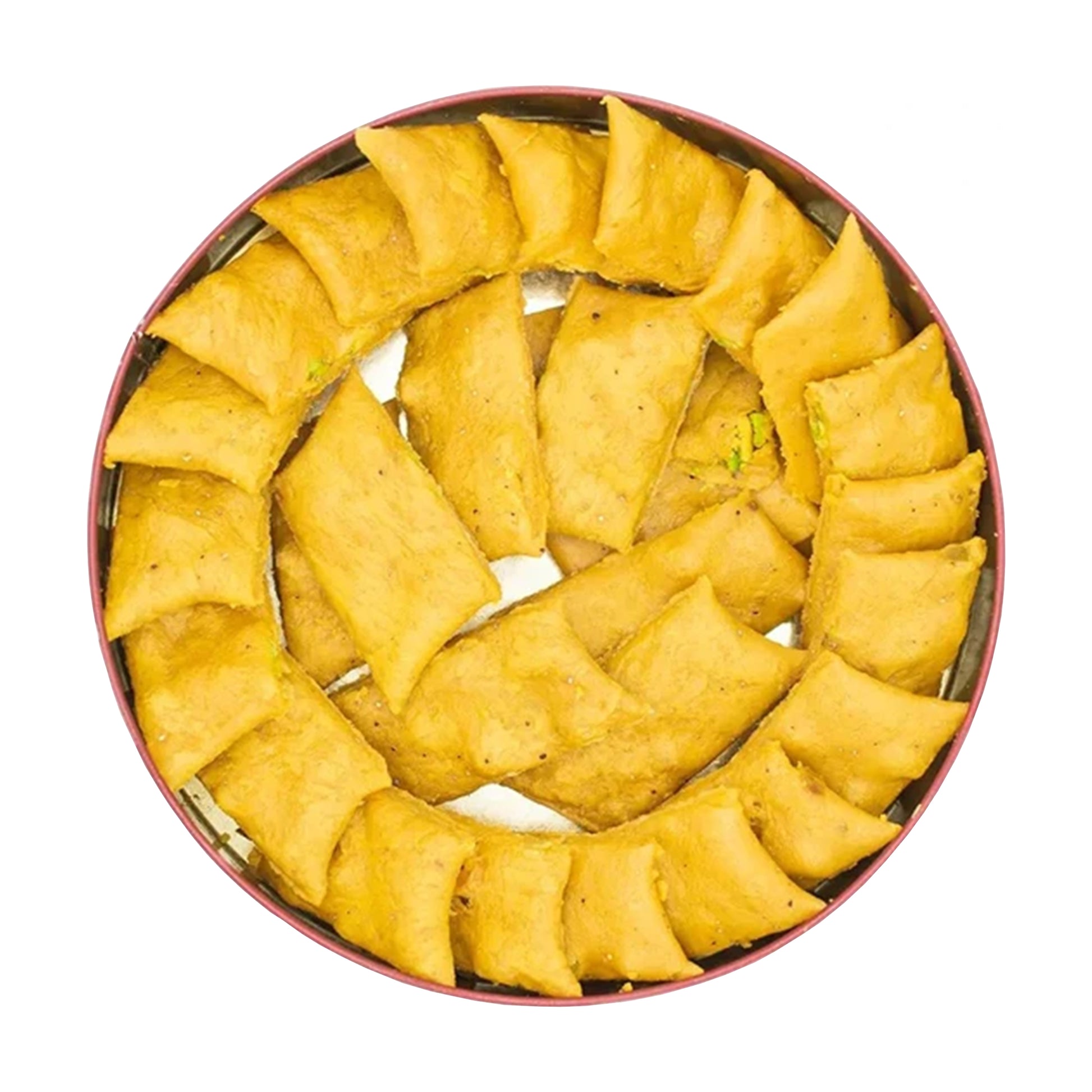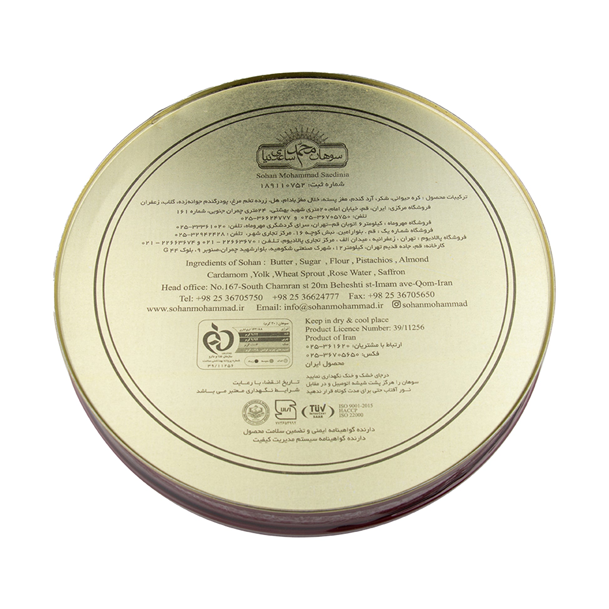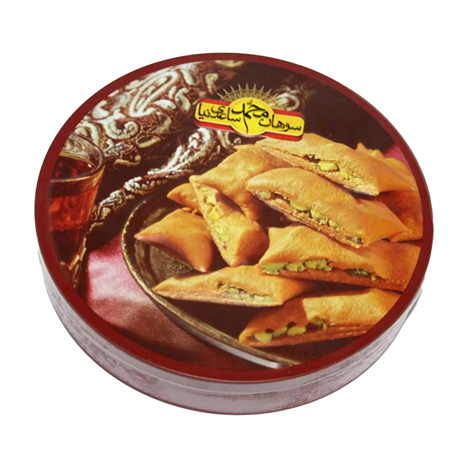 Saedinia Sohan Loghme (500 gr) offers the famous Persian saffron brittle in convenient, bite-sized ('loghme') pieces. Each piece is a crunchy, buttery delight, rich with the flavor of saffron, cardamom, and nuts like pistachio and almond. This format is perfect for serving elegantly alongside tea, eliminating the need to break a large sohan disk.
